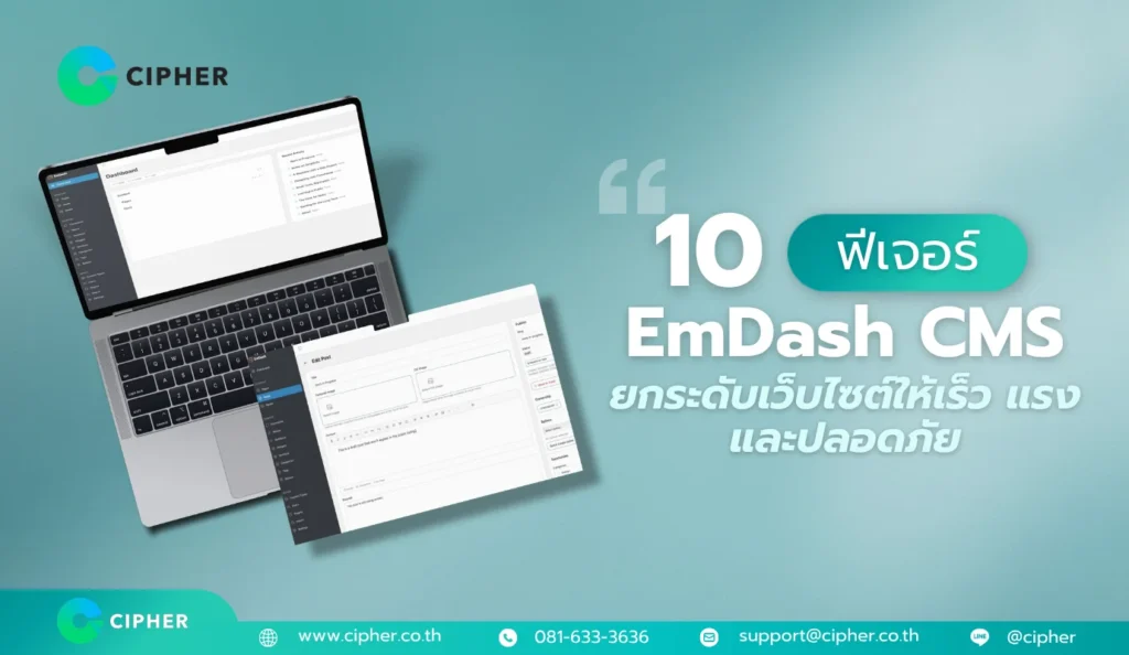 ถ้าคุณกำลังมองหา CMS ที่รองรับอนาคต โหลดเร็ว และปลอดภัยจริง ๆ บทความนี้คือจุดเริ่มต้นที่ใช่สำหรับคุณ CIPHER ผู้ให้บริการดูแลและพัฒนาเว็บไซต์ ได้รวบรวม 10 ฟีเจอร์ EmDash ที่คุณต้องรู้ พร้อมวิเคราะห์ว่าทำไมมันถึงกำลังเขย่าโลกของ CMS อยู่ตอนนี้