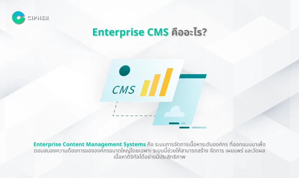 Enterprise CMS เลือกยังไง? เป็นคำถามสำคัญสำหรับองค์กรขนาดใหญ่ที่กำลังมองหา Enterprise Content Management Systems ที่เหมาะสม การเลือก CMS Solutions ให้ตรงกับความต้องการขององค์กร จะช่วยให้การจัดการเนื้อหาดิจิทัลมีประสิทธิภาพ และตอบโจทย์การเติบโตทางธุรกิจ บทความนี้จะแนะนำ 7 ปัจจัยที่ควรพิจารณา พร้อมทั้งแนะนำ CMS Enterprise จาก Cipher ผู้ให้บริการโซลูชันด้าน CMS ชั้นนำ