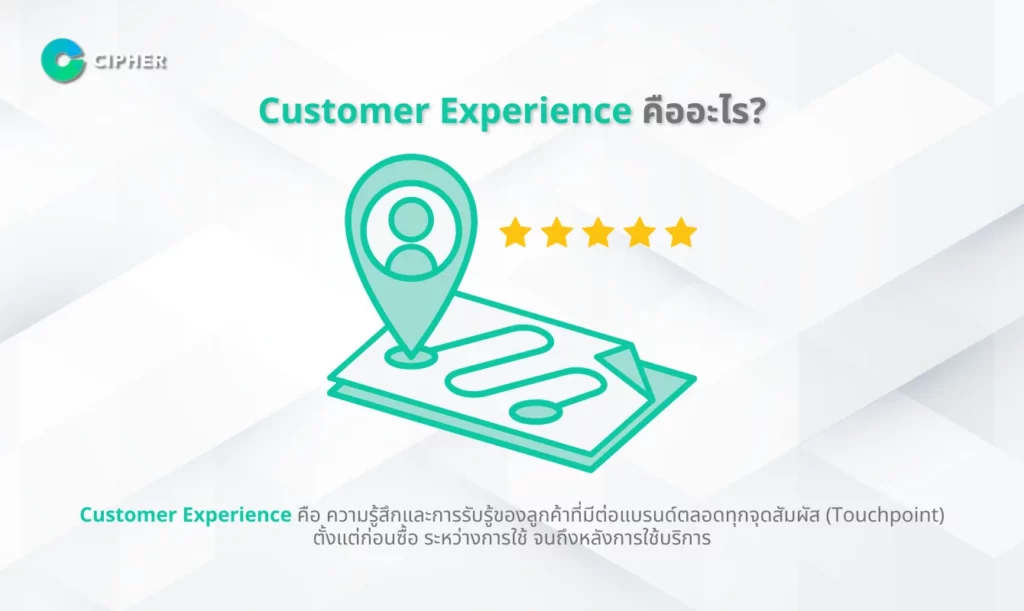 Customer Experience คือ ความรู้สึกและการรับรู้ของลูกค้าที่มีต่อแบรนด์ตลอดทุกจุดสัมผัส (Touchpoint) ตั้งแต่ก่อนซื้อ ระหว่างการใช้ จนถึงหลังการใช้บริการ Experience คือ สิ่งที่เกิดขึ้นในทุกมิติของการมีปฏิสัมพันธ์กับแบรนด์ ซึ่งส่งผลโดยตรงต่อการตัดสินใจซื้อซ้ำและความภักดีของลูกค้า
