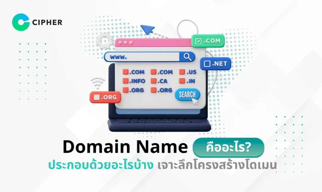 คุณเคยสงสัยไหมว่าทำไมเราถึงเข้าเว็บไซต์ด้วยชื่อที่จดจำได้ง่าย แทนที่จะเป็นตัวเลขยาว ๆ? นั่นเป็นเพราะระบบโดเมนเนม ที่ช่วยให้การท่องโลกอินเทอร์เน็ตของเราสะดวกและเข้าถึงง่ายขึ้น บทความนี้ CIPHER ผู้เชี่ยวชาญด้านการพัฒนาซอฟต์แวร์และโซลูชันด้าน IT จะพาคุณไปรู้จักกับ Domain Name คืออะไร โครงสร้างการทำงาน ประเภท และประโยชน์ที่สำคัญต่อธุรกิจ รวมถึงเทคนิคการตั้งชื่อโดเมนให้น่าสนใจ ติดตามไปพร้อมกันได้เลย!