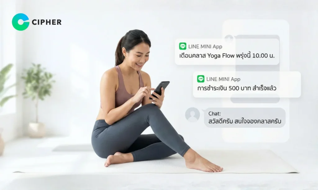CIPHER เป็น LINE MINI App Agency ในไทย ที่มีประสบการณ์ในการพัฒนาระบบจองและบริหารจัดการสำหรับธุรกิจหลากหลายประเภท ทีมของเรามีความเชี่ยวชาญในการออกแบบ LINE MINI App สำหรับโยคะ ที่ตอบโจทย์การใช้งานจริง ไม่ซับซ้อนเกินไป แต่ครบฟีเจอร์ทุกอย่างที่สตูดิโอโยคะต้องการ เรารับทำ LINE MINI App แบบ custom ได้ตามความต้องการของคุณ พร้อมให้คำปรึกษาและดูแลหลังการขายอย่างใส่ใจ หากคุณสนใจที่จะยกระดับการบริหารจัดการคลาสโยคะด้วยเทคโนโลยีที่ช่วยประหยัดเวลาและเพิ่มรายได้ ติดต่อ CIPHER ได้ทันที