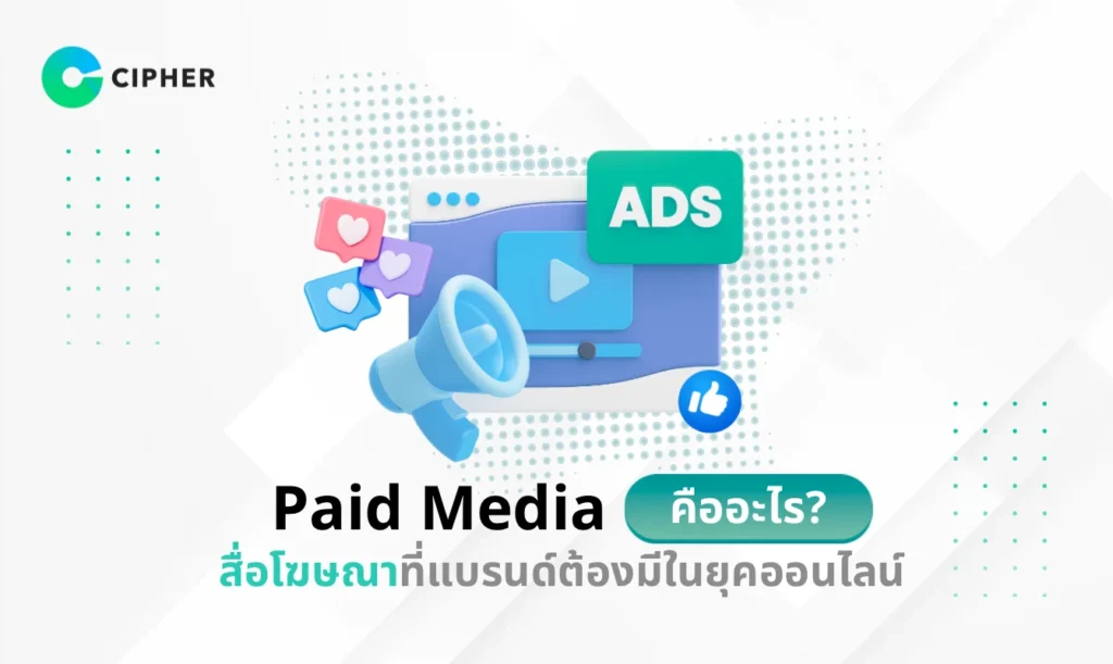 การทำการตลาดออนไลน์แบรนด์ต้องรู้จักเลือกใช้สื่อให้เหมาะกับเป้าหมายที่มีประสิทธิภาพและหนึ่งในสื่อที่ทรงพลังที่สุดในยุคดิจิทัลคือ Paid Media หรือสื่อที่เราต้องจ่ายเงินเพื่อเข้าถึงกลุ่มเป้าหมาย แล้ว Paid Media คืออะไร? ทำไมแบรนด์ถึงควรให้ความสำคัญ? และจะใช้ Paid Media ให้คุ้มค่าที่สุดได้อย่างไร? บทความนี้ CIPHER ผู้เชี่ยวชาญด้าน IT โซลูชันและการทำการตลาดแบบครบวงจร จะพาคุณไปทำความรู้จักกับโลกของ Paid Media ที่จะช่วยให้ธุรกิจของคุณเติบโตอย่างก้าวกระโดด