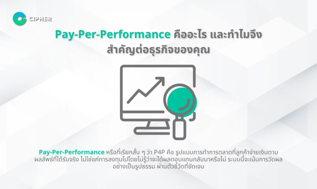 การเลือกทำงานกับเอเจนซี่แบบ Pay-Per-Performance อย่าง Cipher สามารถช่วยให้ธุรกิจของคุณเติบโตได้อย่างมีประสิทธิภาพ โดยเฉพาะในยุคที่การแข่งขันทางธุรกิจสูงขึ้นเรื่อย ๆ และงบประมาณด้านการตลาดมีจำกัด