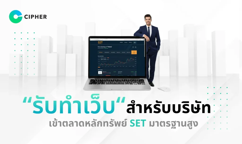 CIPHER พร้อมเป็นพาร์ทเนอร์ที่เชื่อถือได้ในการรับทำเว็บสำหรับบริษัทเข้าตลาดหลักทรัพย์ SET ตั้งแต่การวางแผนโครงสร้าง ออกแบบภาพลักษณ์องค์กร ไปจนถึงพัฒนาและส่งมอบเว็บไซต์ที่ครบเครื่อง พร้อมอบรมทีมงานให้ใช้งานระบบได้อย่างมีประสิทธิภาพ ติดต่อเราวันนี้ เพื่อปรึกษาและรับข้อเสนอที่ตอบโจทย์ความต้องการเฉพาะขององค์กรคุณ