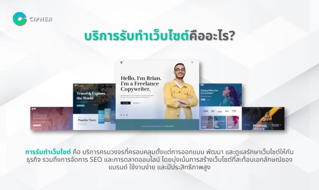 ในยุคดิจิทัลที่ธุรกิจต้องปรับตัวสู่โลกออนไลน์ บริการรับทำเว็บไซต์ จึงเป็นบริการที่ได้รับความนิยมอย่างมาก โดยเฉพาะจากธุรกิจที่ต้องการผู้เชี่ยวชาญมาดูแลการสร้างเว็บไซต์แบบครบวงจร CIPHER พร้อมให้บริการตั้งแต่การออกแบบ พัฒนา ไปจนถึงการดูแลรักษาเว็บไซต์ที่ตอบโจทย์ทั้งด้านธุรกิจและการใช้งานของผู้เยี่ยมชม