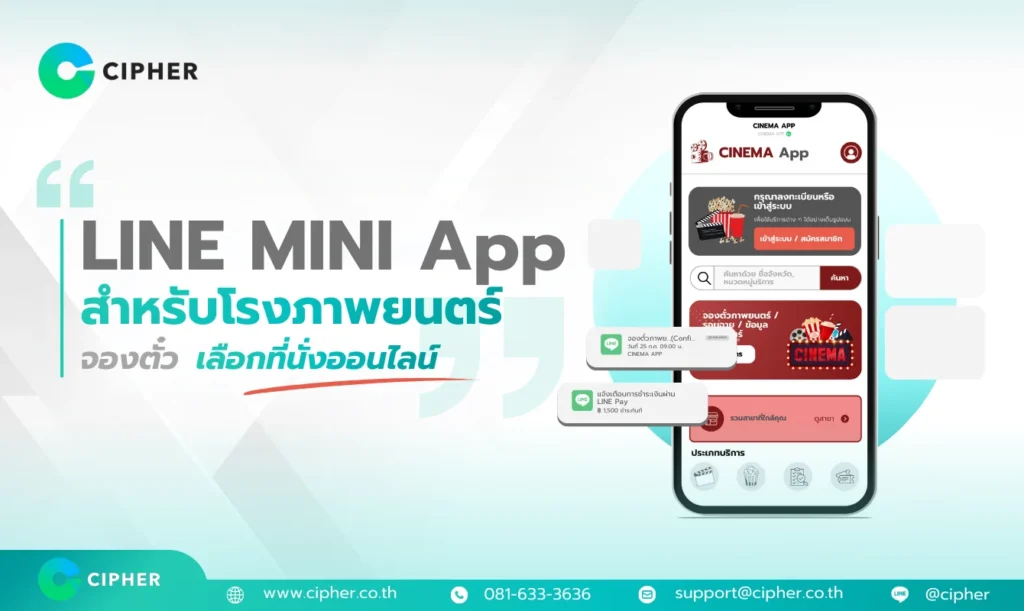 LINE MINI App สำหรับโรงภาพยนตร์ เป็นมากกว่าระบบจองตั๋ว เป็นโซลูชันที่ช่วยยกระดับธุรกิจให้ทันสมัยและตอบโจทย์ผู้บริโภคยุคดิจิทัล ทำให้ผู้ชมได้รับประสบการณ์ที่ดีตั้งแต่การจองจนถึงการเข้าชมจริง และที่สำคัญเจ้าของโรงก็ได้ประโยชน์จากการเพิ่มยอดขาย ลดต้นทุน และจัดการธุรกิจได้ง่ายขึ้น หากคุณพร้อมเปลี่ยนโฉม LINE ของโรงภาพยนตร์ให้เป็นช่องทางจองตั๋วที่ทรงพลัง CIPHER พร้อมเป็นพาร์ทเนอร์ในการพัฒนาระบบที่เหมาะกับคุณที่สุด