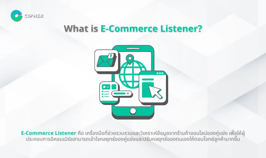 Get Started with E-Commerce Listener from Cipher today to gain the competitive edge your e-commerce business needs. Cipher’s comprehensive analysis services provide actionable insights that drive growth and profitability.