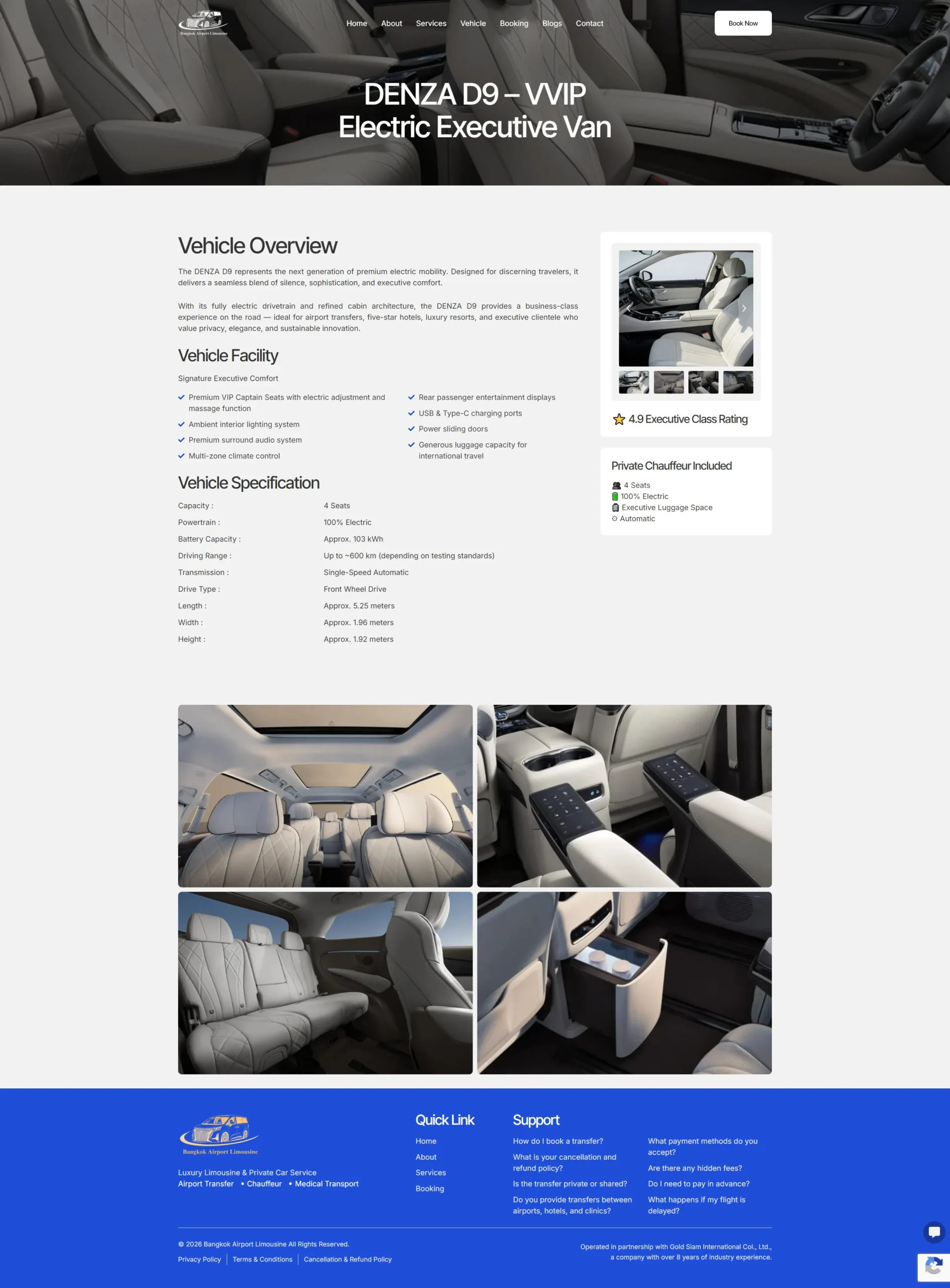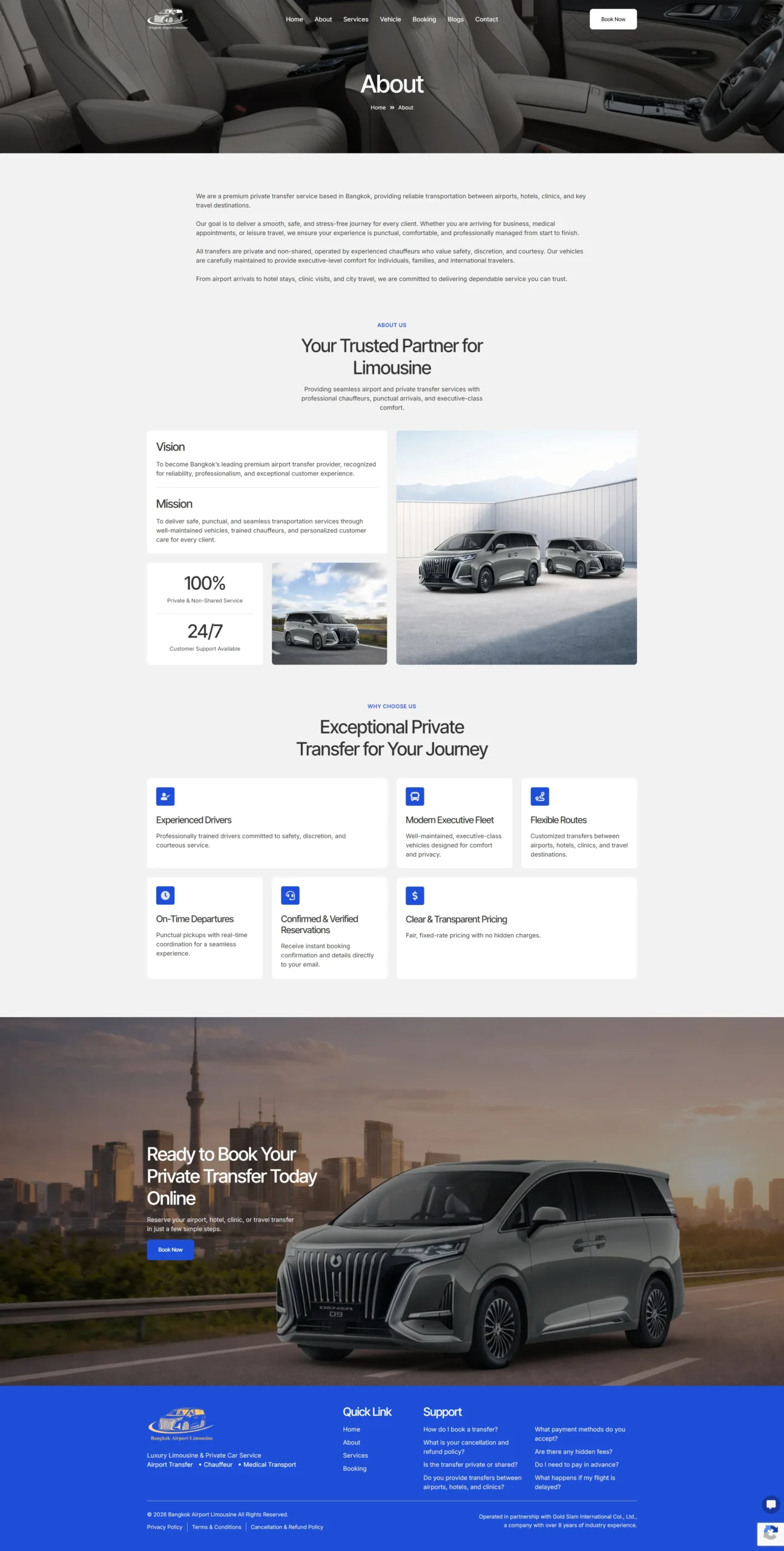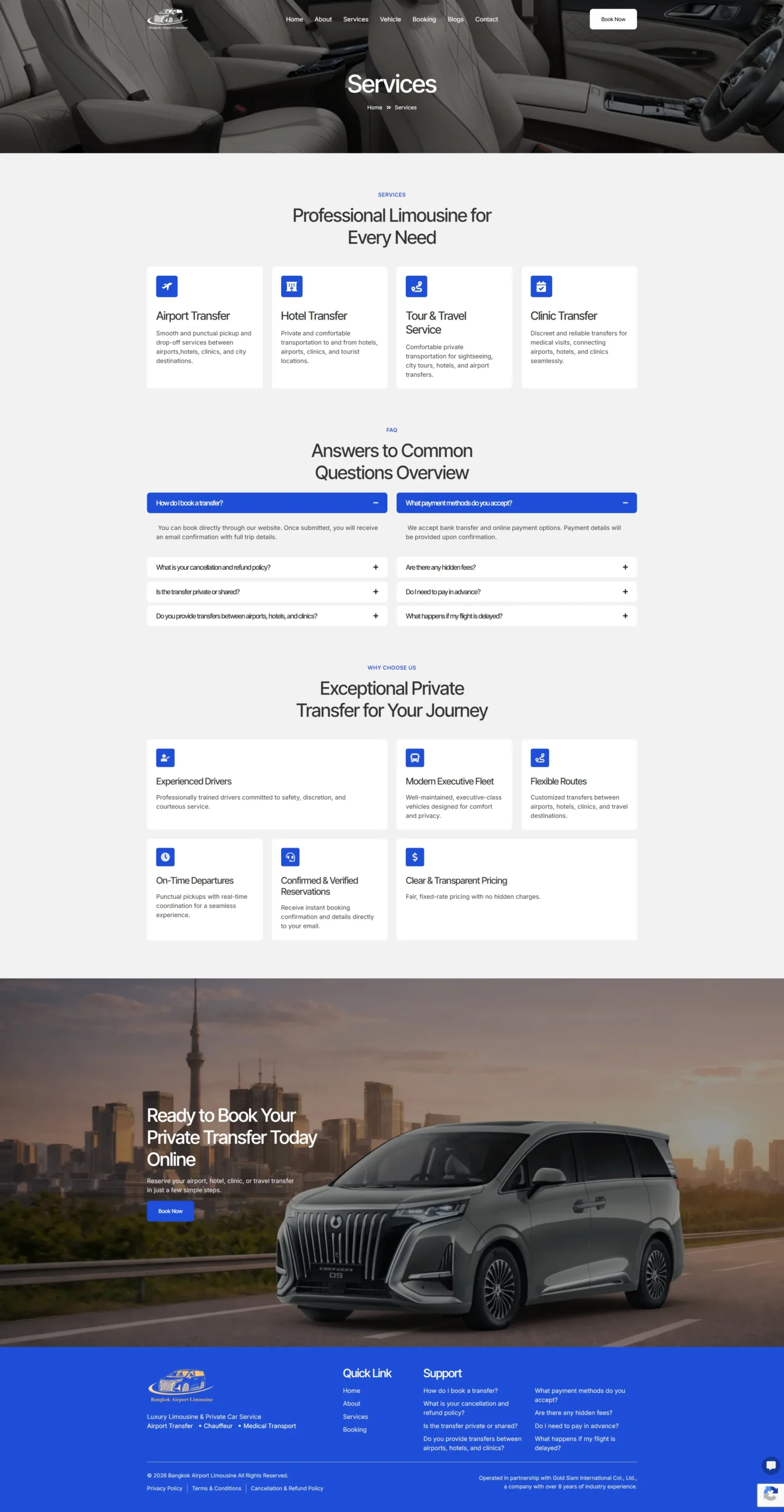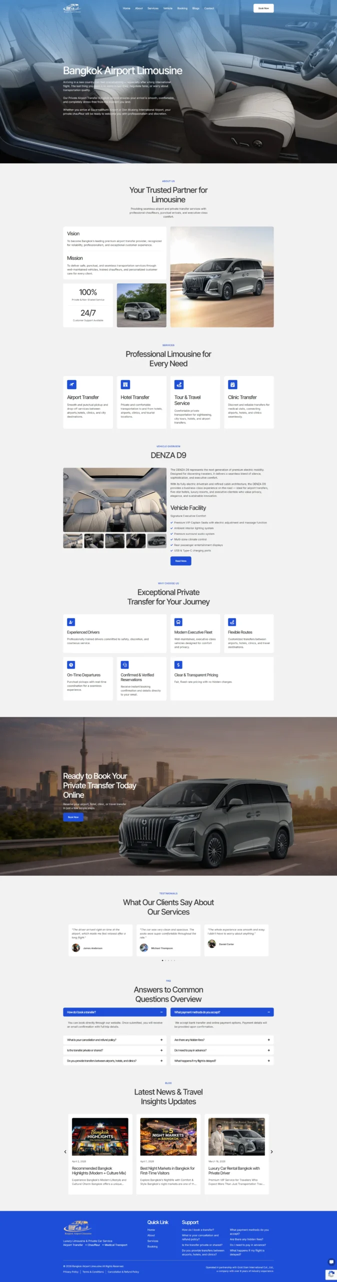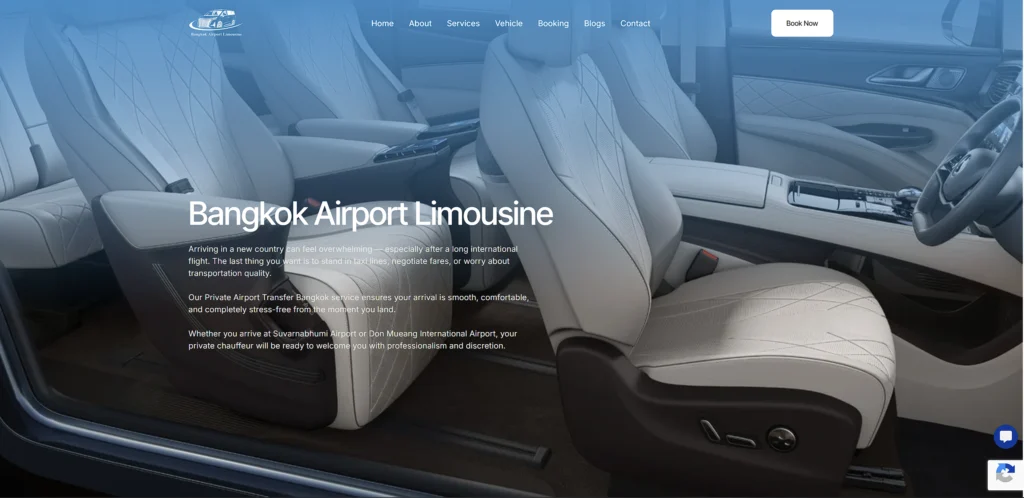 เว็บไซต์ Bangkok Airport Limousine เป็นเว็บให้บริการการจองรถรับส่งระดับ Premium / VIP / Professional service เน้น “ความน่าเชื่อถือและความสะดวก” มุ่งเน้นไปที่นักท่องเที่ยวต่างชาติโดยเฉพาะ โดยต้องการสื่อให้เห็นด้านความปลอดภัย, ความตรงเวลาและประสบการณ์ระดับพรีเมียมที่จะได้รับจากการใช้บริการ