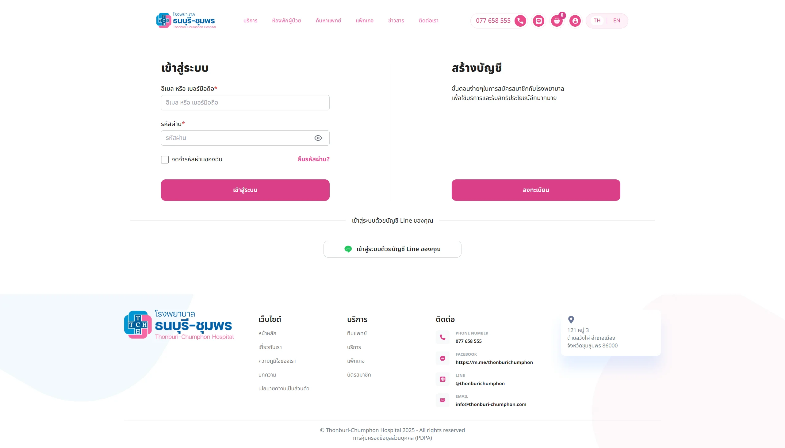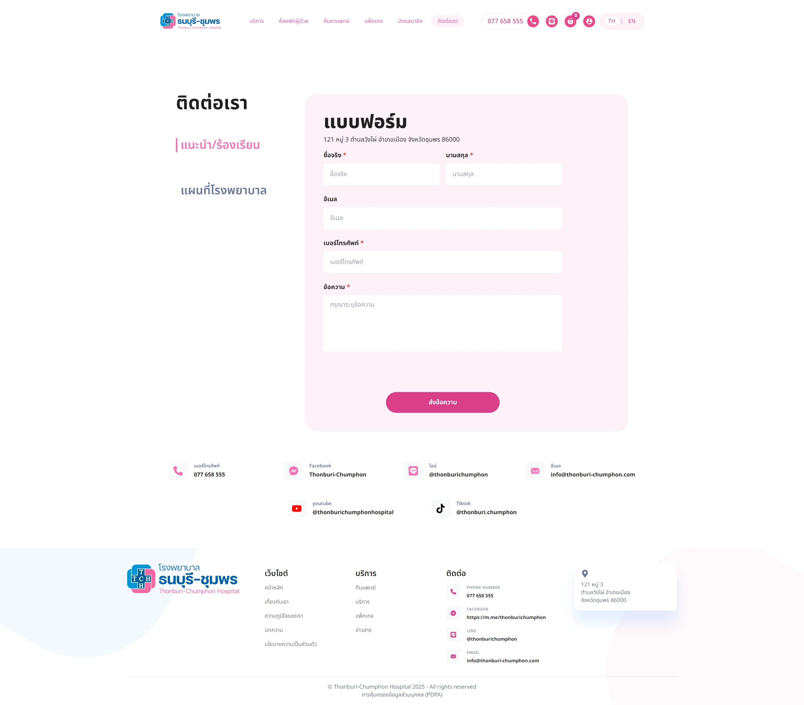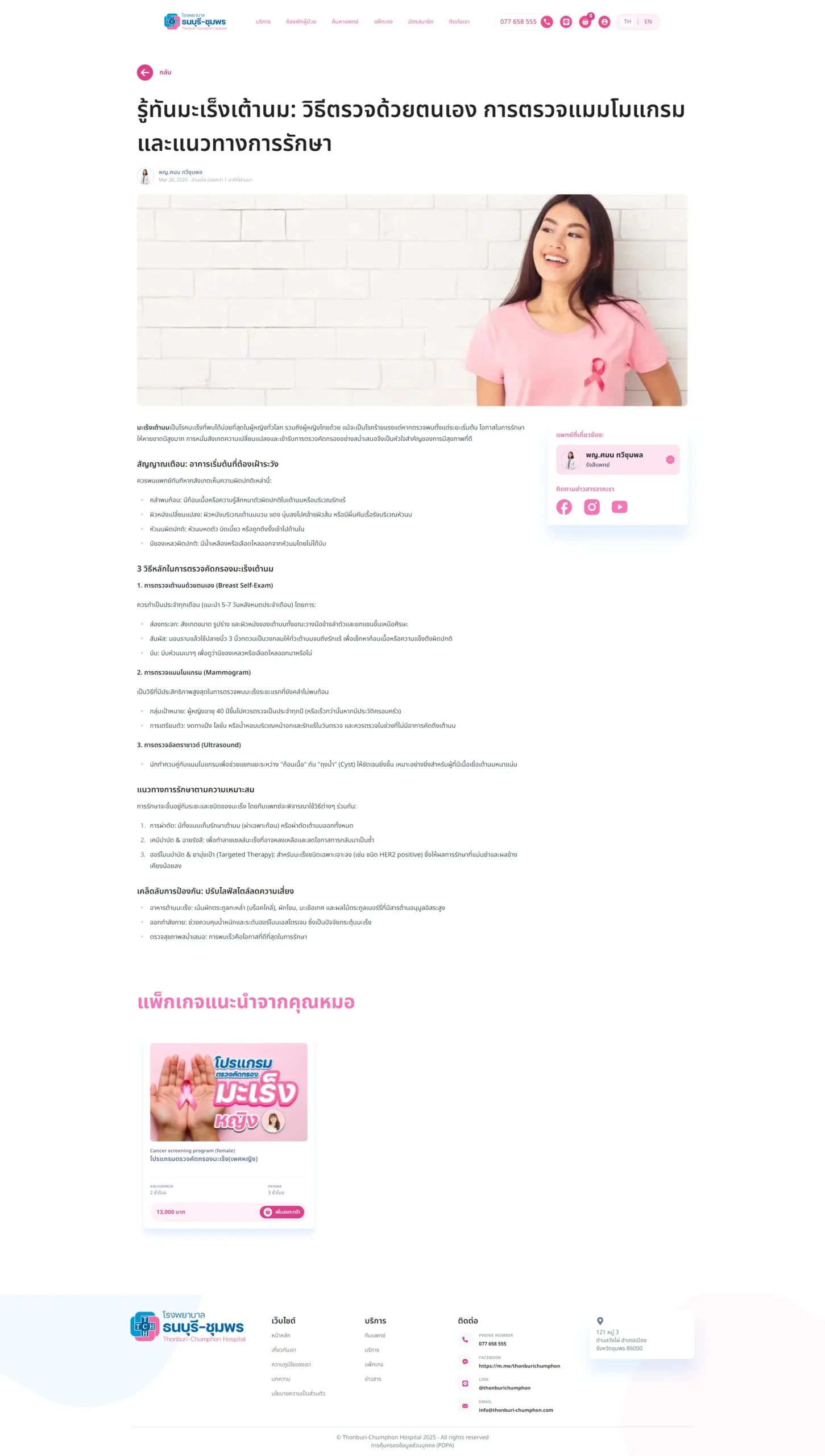 เว็บไซต์ thonburi-chumphon.com เป็นเว็บไซต์ทางการของโรงพยาบาลธนบุรี-ชุมพร มีเป้าหมายหลักคือ ให้ข้อมูลบริการทางการแพทย์, ขายแพ็กเกจสุขภาพ, นัดหมายการใช้บริการ, สร้างความน่าเชื่อถือแบรนด์, ให้ความรู้สุขภาพผ่านบทความและเป็นช่องทางการติดต่อสื่อสารระหว่างโรงพยาบาลและผู้ที่สนใจใช้บริการอีกช่องทางหนึ่ง