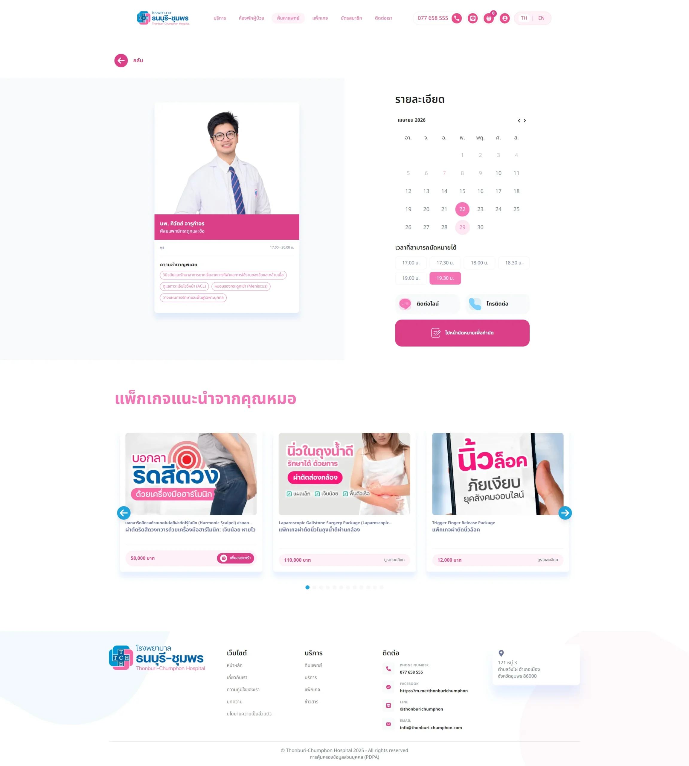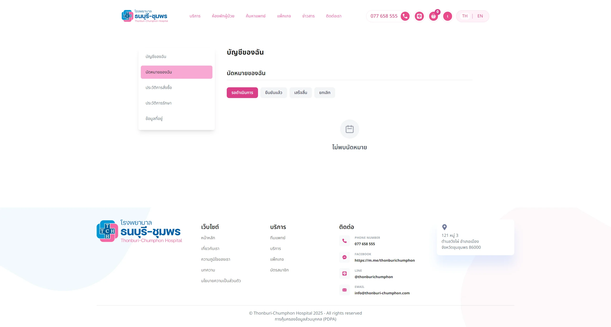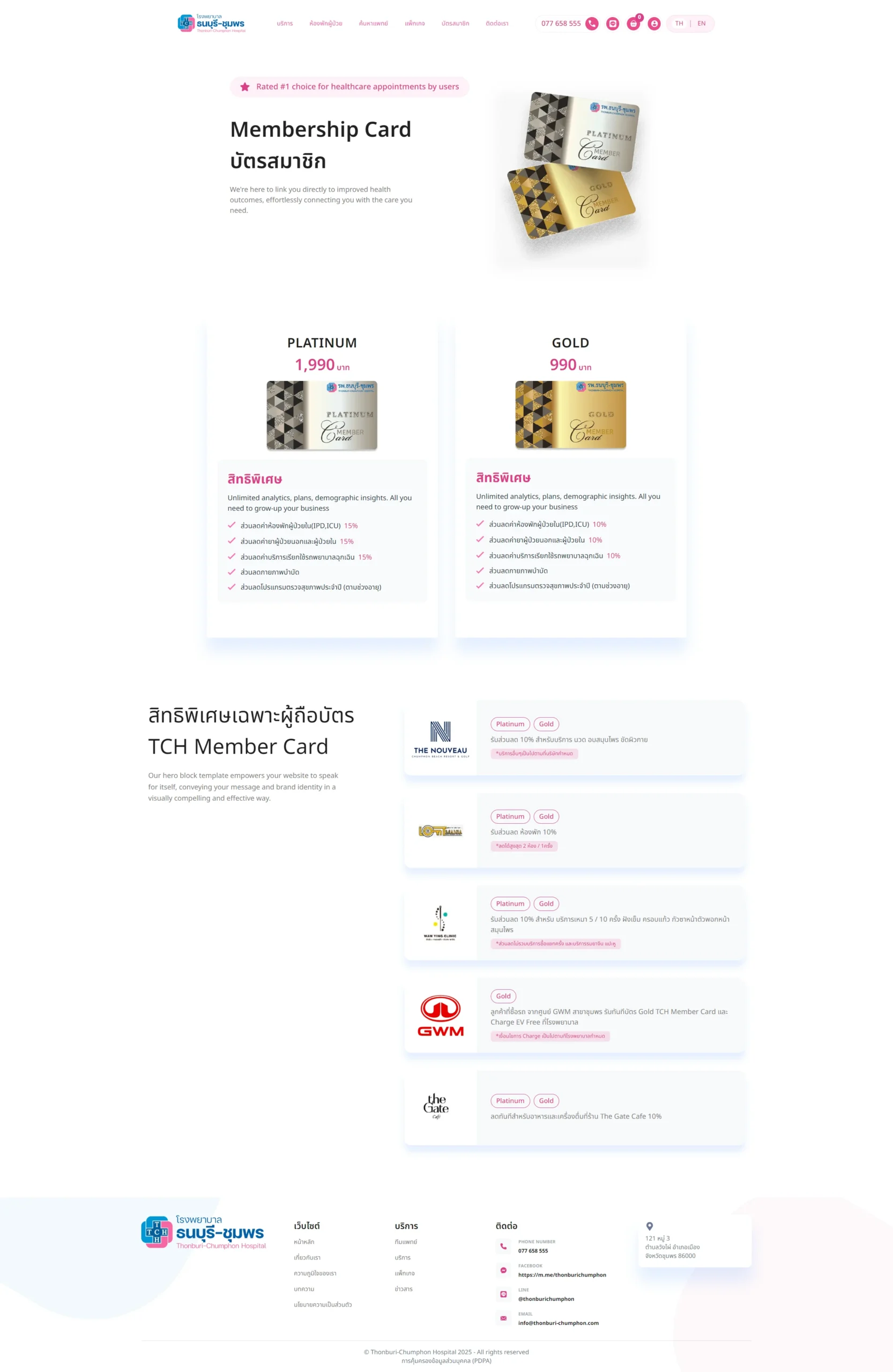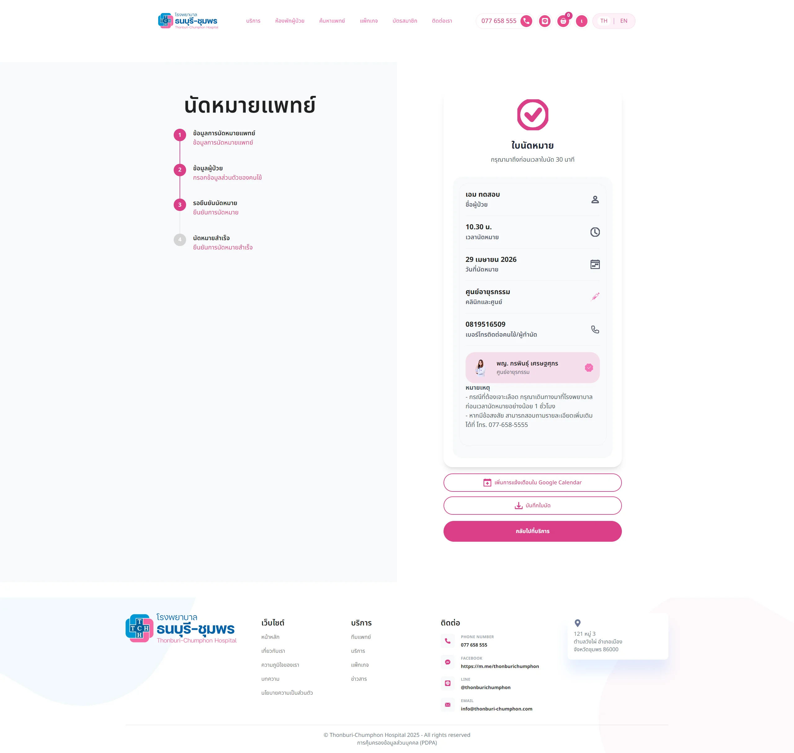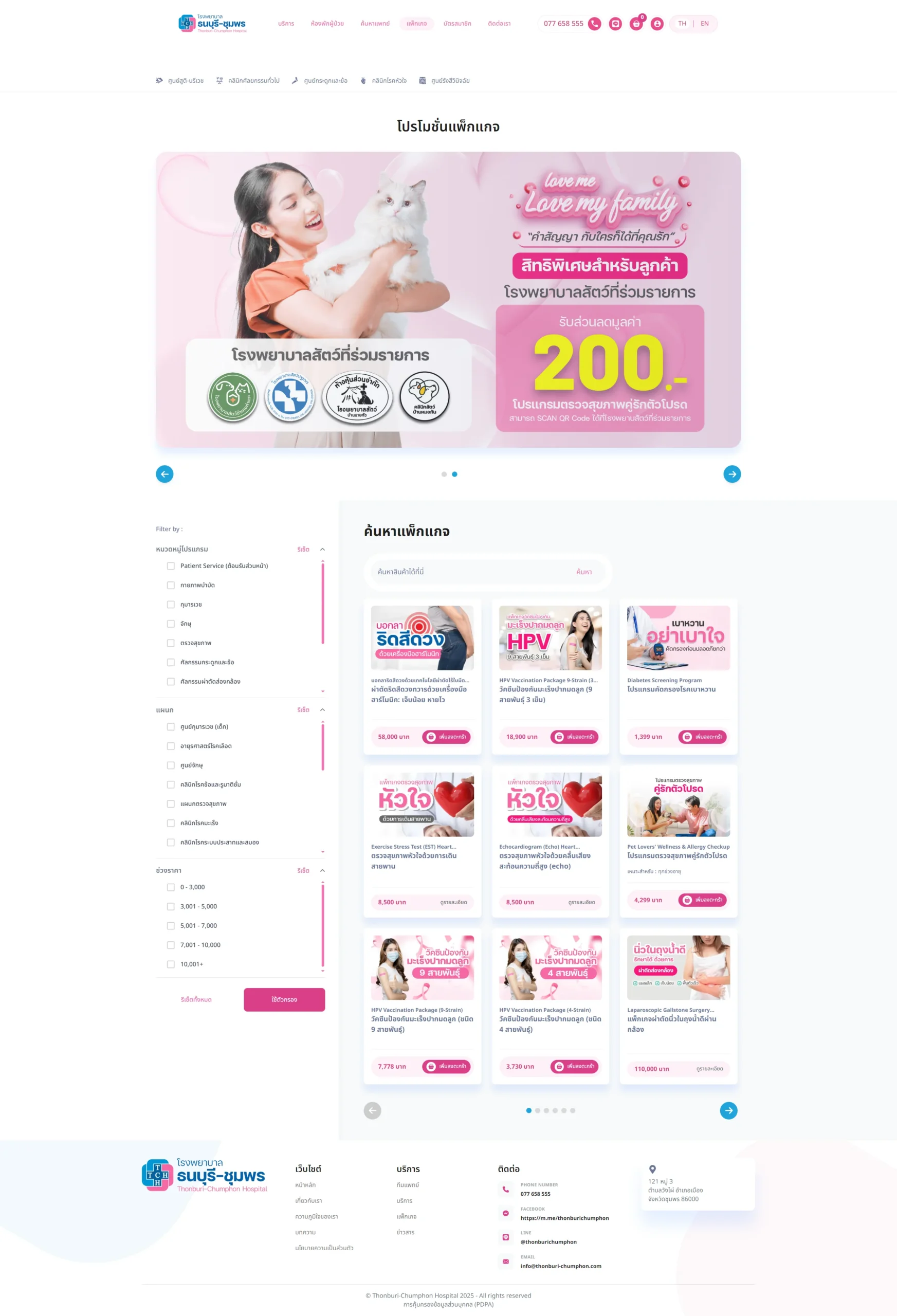 เว็บไซต์รองรับระบบสมาชิก, การนัดหมาย, การซื้อแพ็คเกจต่างๆ ซึ่งสามารถปรับแต่งได้ตามความเหมาะสมและความต้องการของโรงพยาบาล