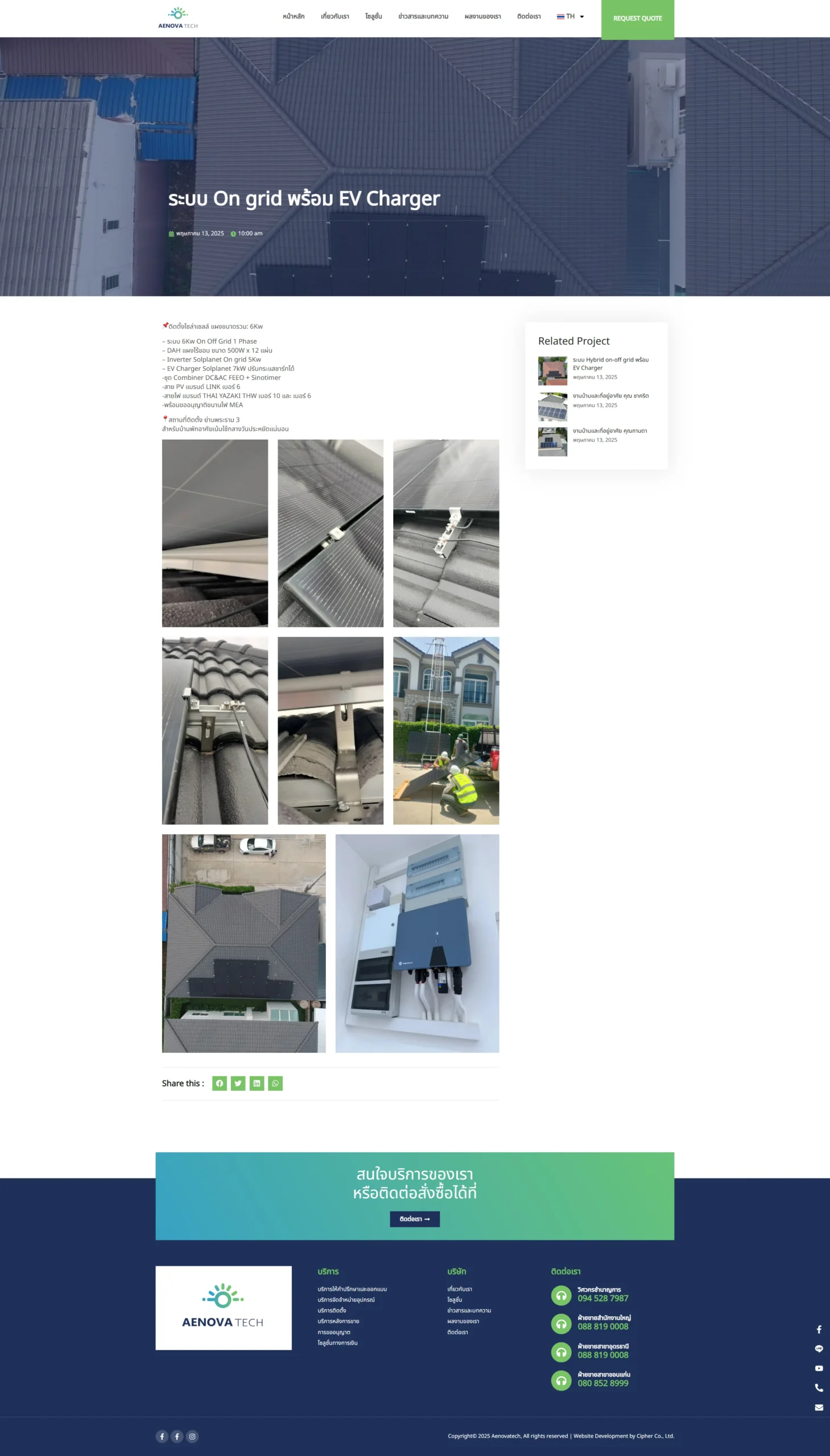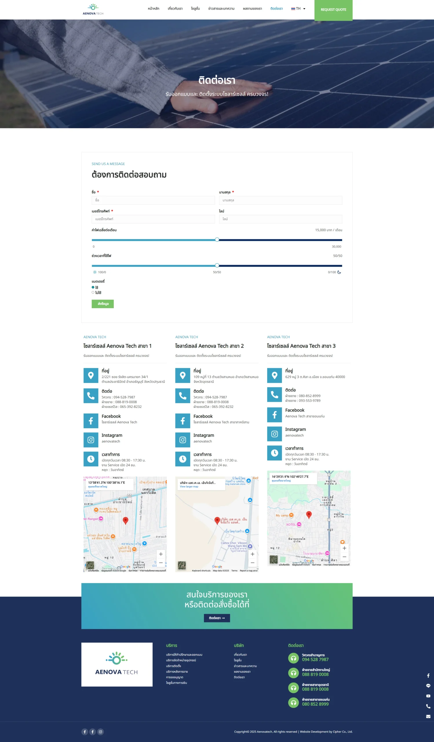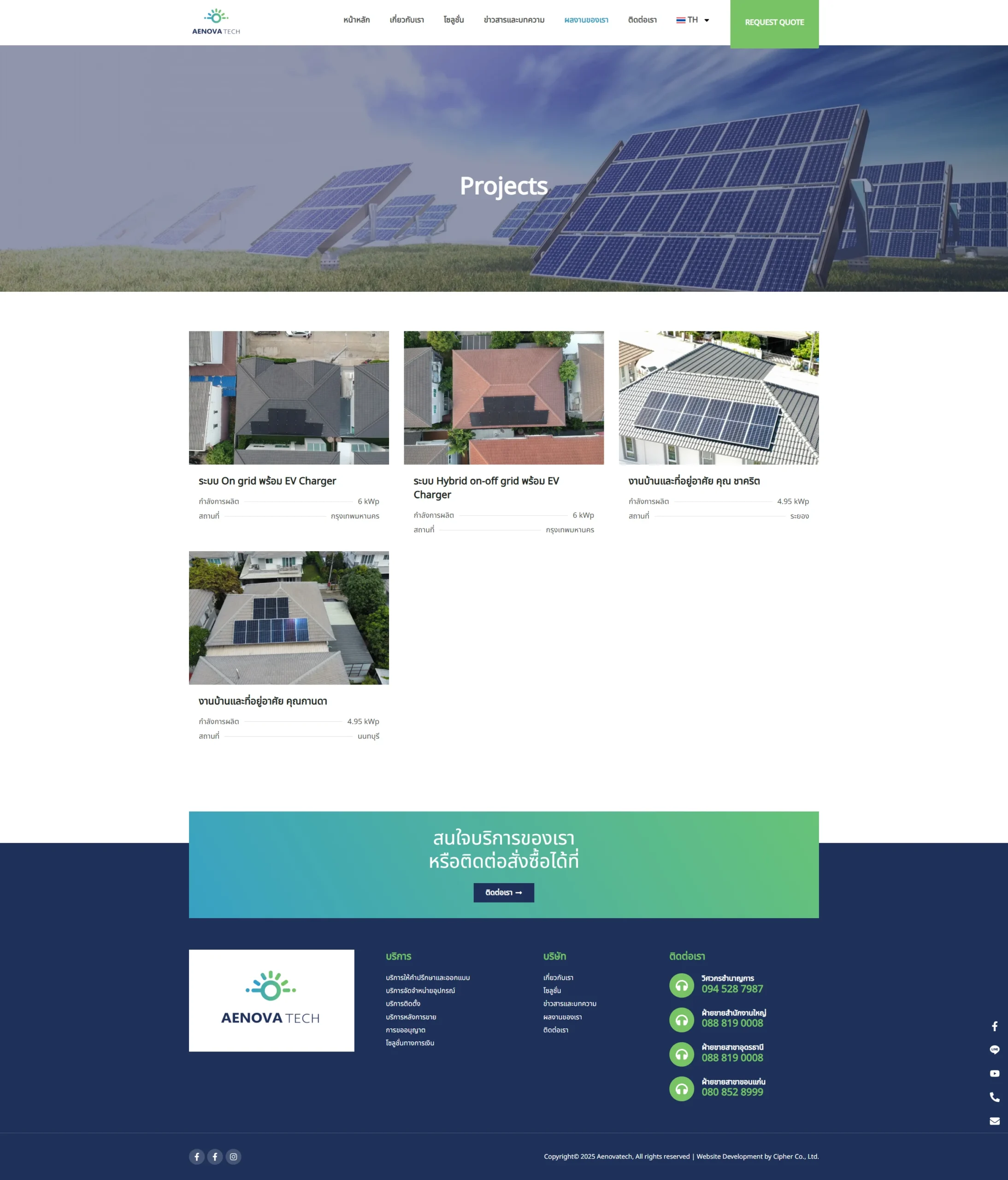 Aenova Tech เป็นบริษัทที่ให้บริการโซลูชันพลังงานแสงอาทิตย์ (solar energy solutions) แบบครบวงจร (“One-Stop Service”) ตั้งแต่ปรึกษา ออกแบบ ติดตั้ง ดำเนินงานและบริการหลังการขาย ฯลฯ เว็บไซต์เน้นนำเสนอจุดแข็ง เช่น ประสบการณ์กว่า 10 ปี, โครงการกว่า 1,500 แห่งทั่วประเทศ, ทีมวิศวกรมืออาชีพ, การันตีงานติดตั้ง 10 ปี ฯลฯ