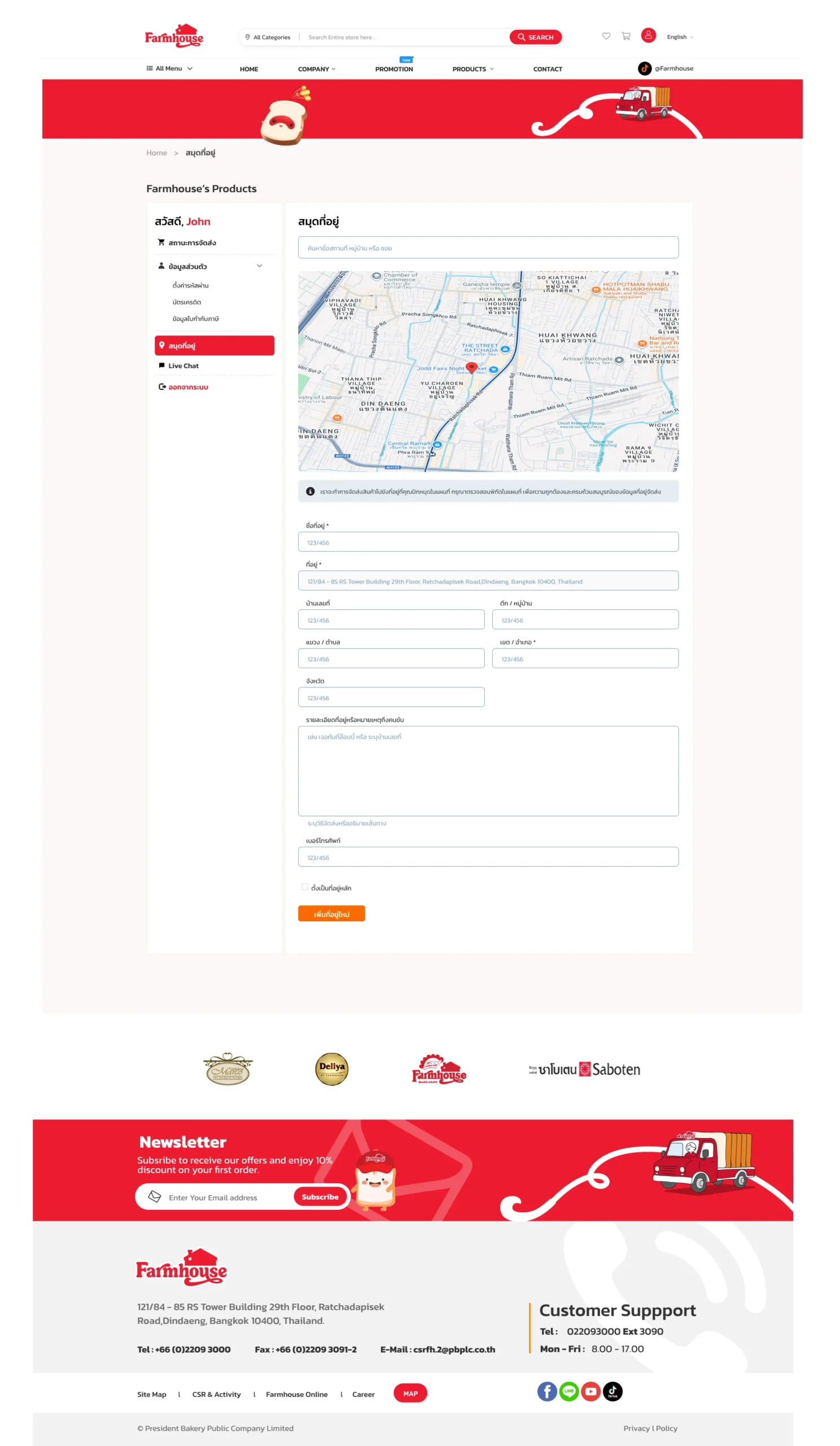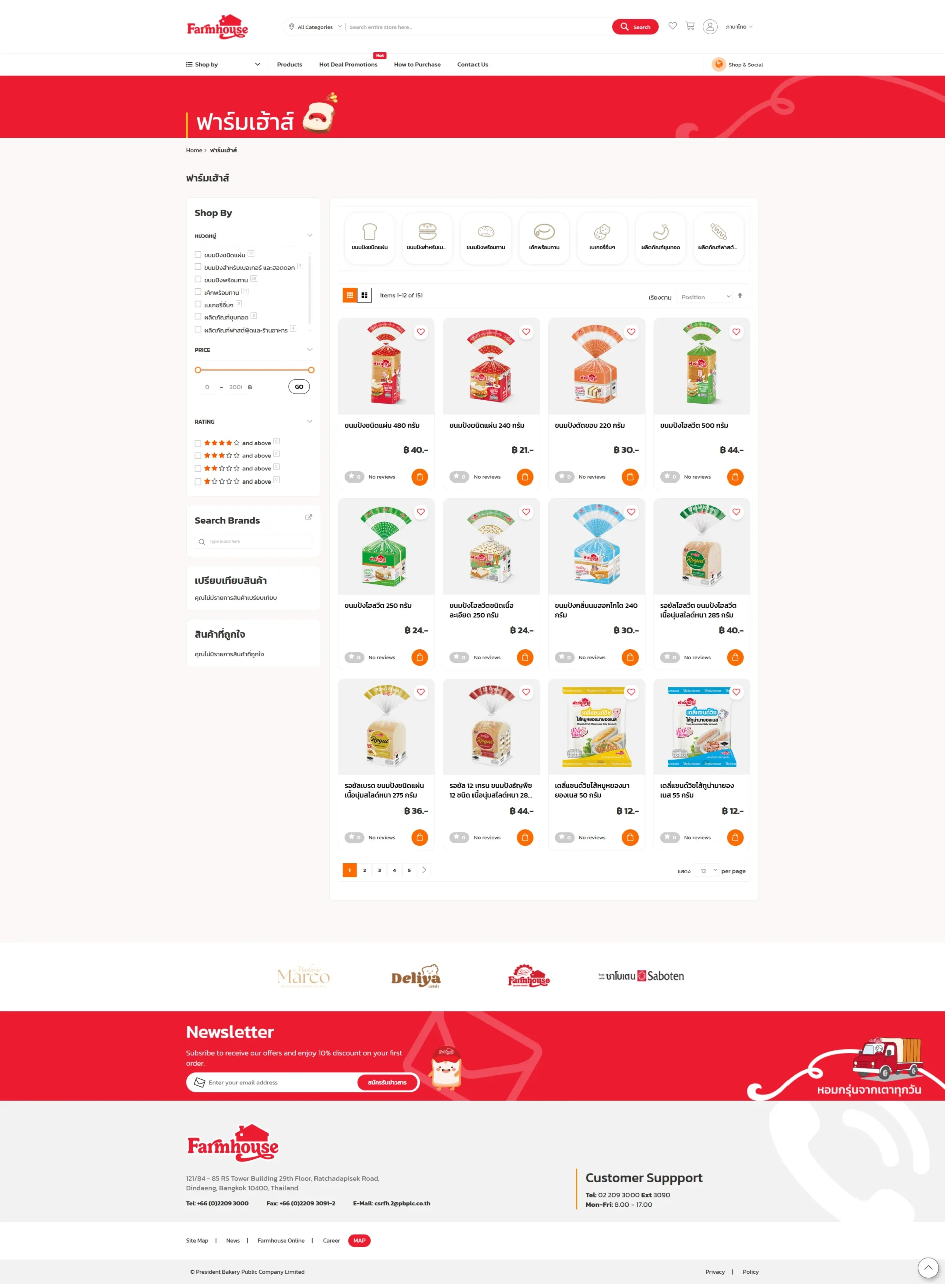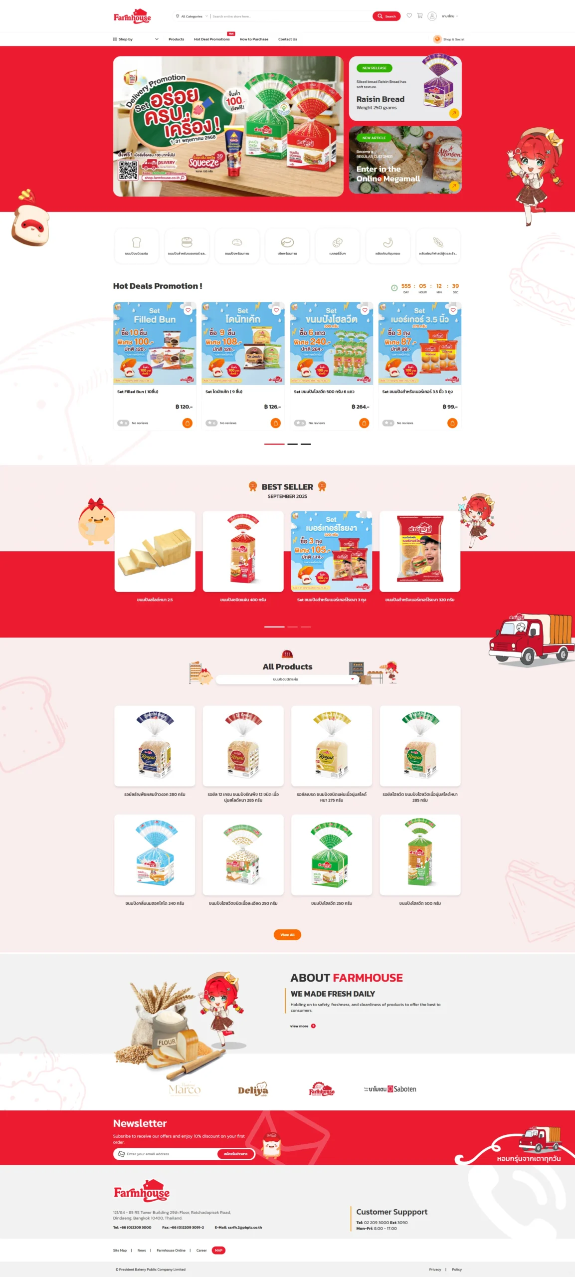 เว็บไซต์ Farmhouse เป็นแพลตฟอร์มอีคอมเมิร์ซของ Farmhouse บริษัทจัดจำหน่ายเบเกอรี่/ขนมปัง ที่ออกแบบมาเพื่อผู้บริโภคแบบ B2C โดยตรง ซึ่งเราได้จัดทำระบบทั้งหมด ภายในเว็บไซต์ ยกตัวอย่างเช่น