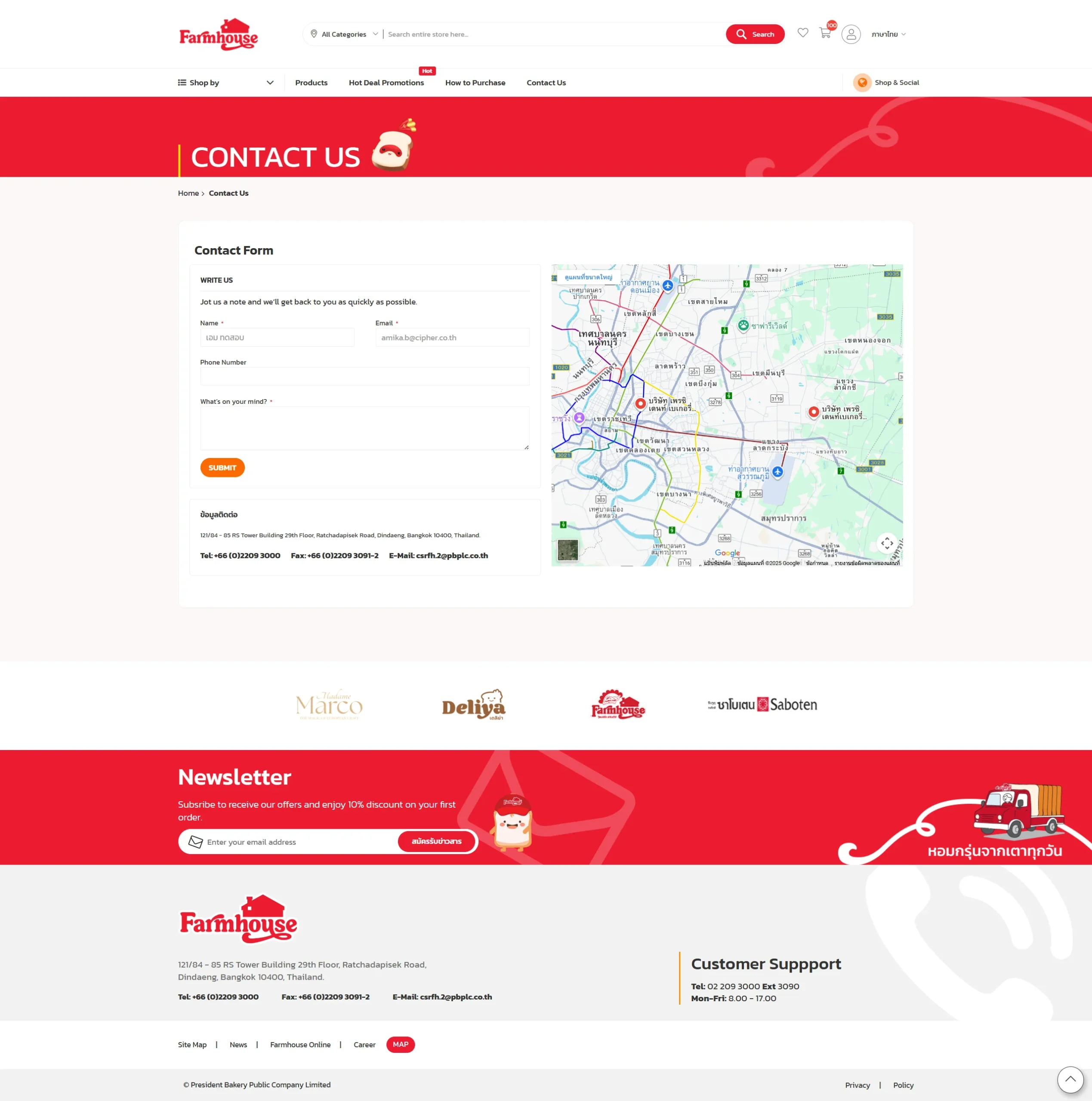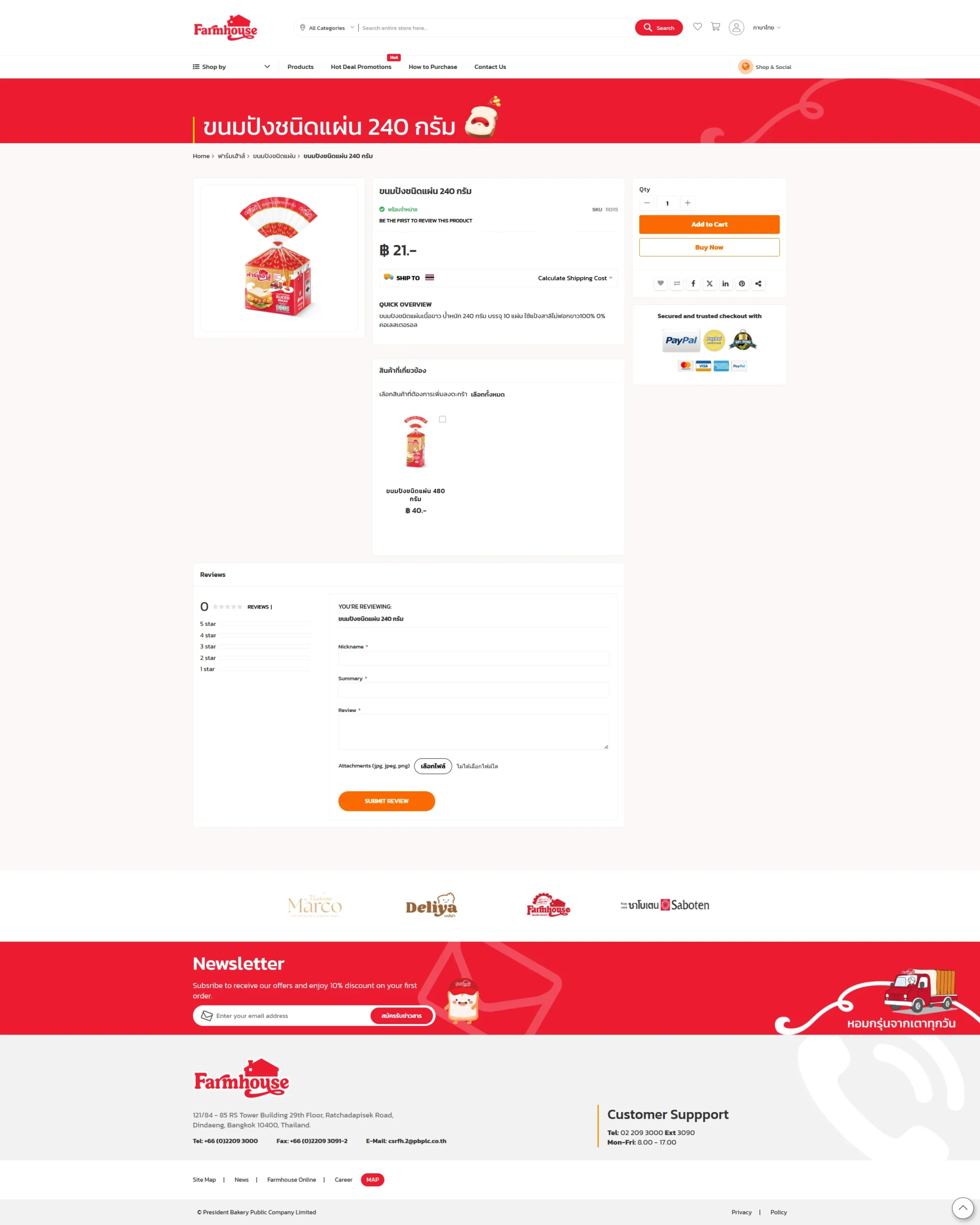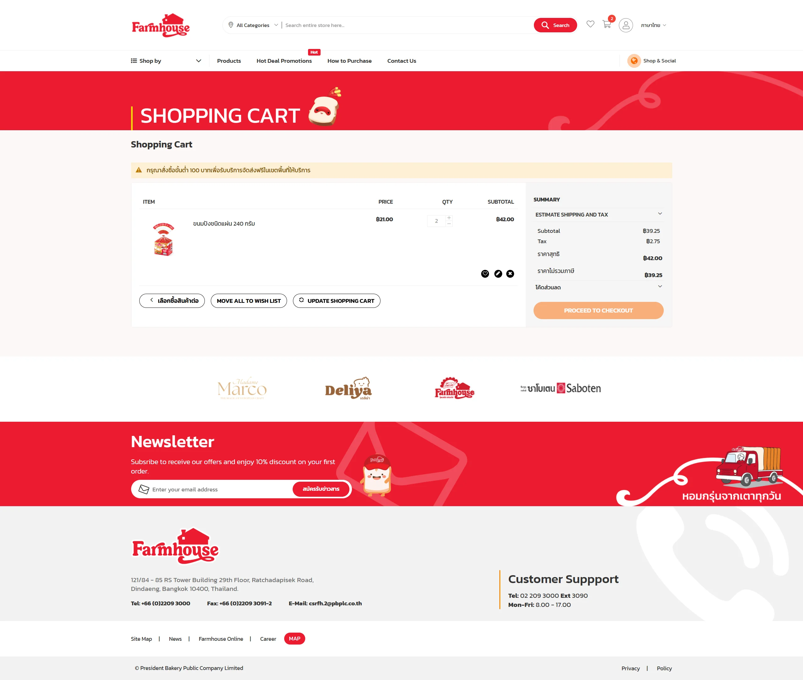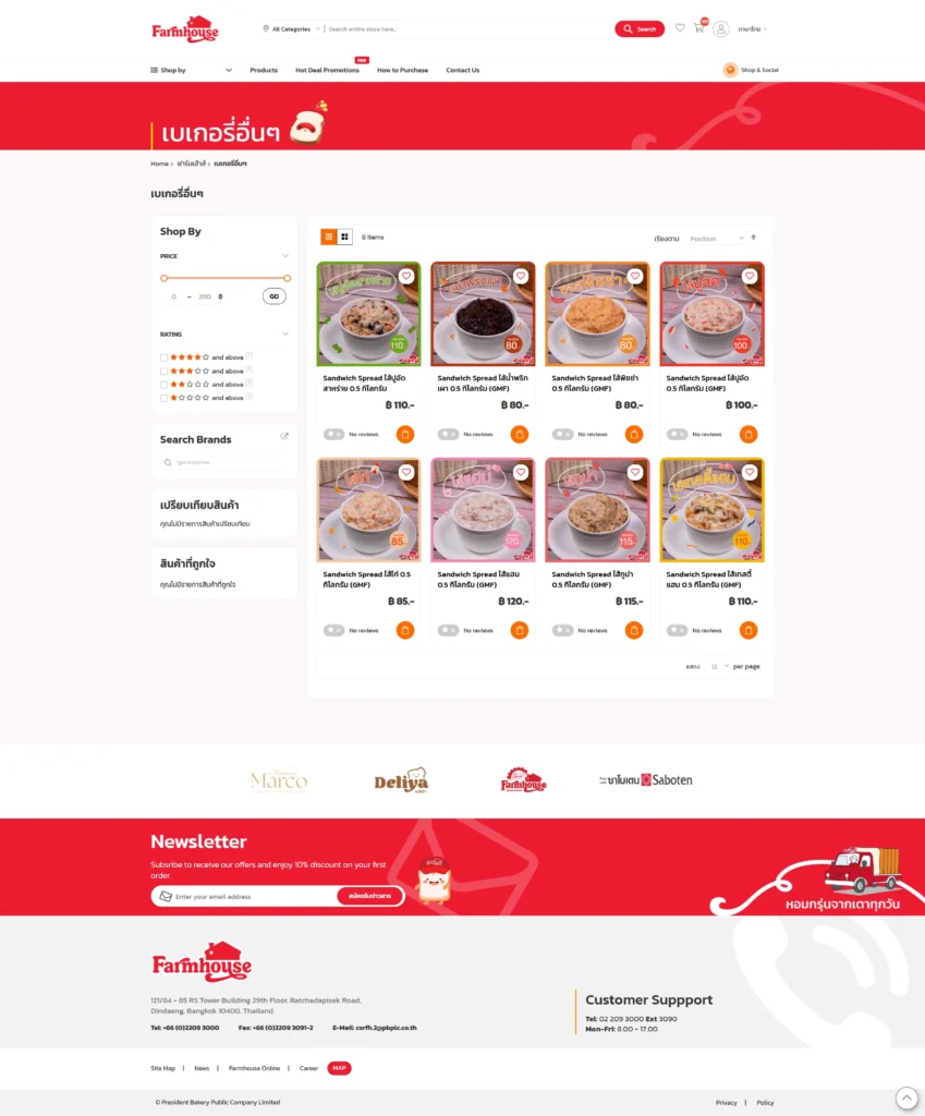 เว็บไซต์ Farmhouse เป็นแพลตฟอร์มอีคอมเมิร์ซของ Farmhouse บริษัทจัดจำหน่ายเบเกอรี่/ขนมปัง ที่ออกแบบมาเพื่อผู้บริโภคแบบ B2C โดยตรง ซึ่งเราได้จัดทำระบบทั้งหมด ภายในเว็บไซต์ ยกตัวอย่างเช่น