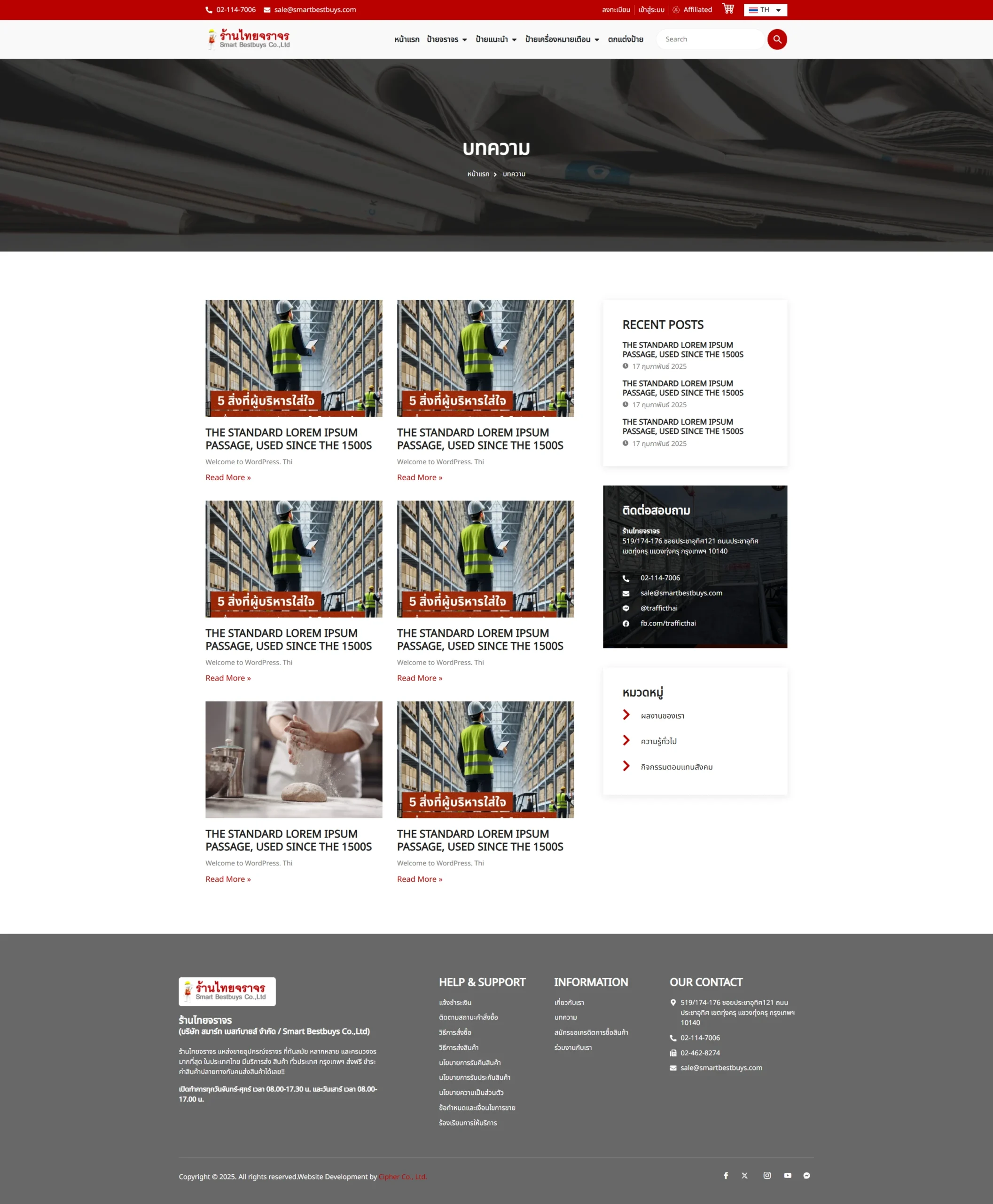 เว็บไซต์ smarttrafficsafety.com เป็นเว็บไซต์ของร้านไทยจราจร จำหน่ายอุปกณ์จราจรที่ทันสมัยและครบวงจรมากที่สุดในประเทศไทย มีทั้งสินค้าที่ผลิตในประเทศและนำเข้าจากต่างประเทศ เช่น ญี่ปุ่น เกาหลี จีน สินค้าได้แก่ ป้ายจราจร ป้ายแนะนำ ป้ายเครื่องหมายเตือน และยังสามารถสั่งทำป้ายตามรูปแบบที่ต้องการผ่านเว็บไซต์ได้อีกด้วย ดังนั้นการออกแบบเว็บไซต์จึงเน้น “ข้อมูล + สินค้า + ความน่าเชื่อถือ” เหมาะกับลูกค้ากลุ่มหน่วยงานรัฐ ผู้รับเหมา โรงงาน / โครงการก่อสร้าง หรือองค์กรที่ต้องจัดซื้ออุปกรณ์จราจรจำนวนมาก