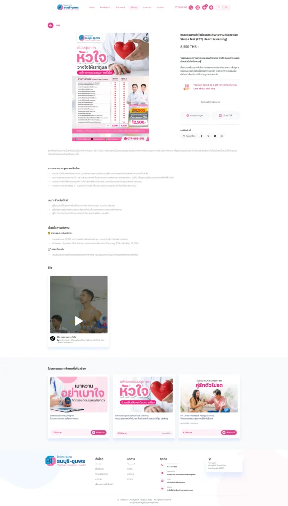 เว็บไซต์รองรับระบบสมาชิก, การนัดหมาย, การซื้อแพ็คเกจต่างๆ ซึ่งสามารถปรับแต่งได้ตามความเหมาะสมและความต้องการของโรงพยาบาล