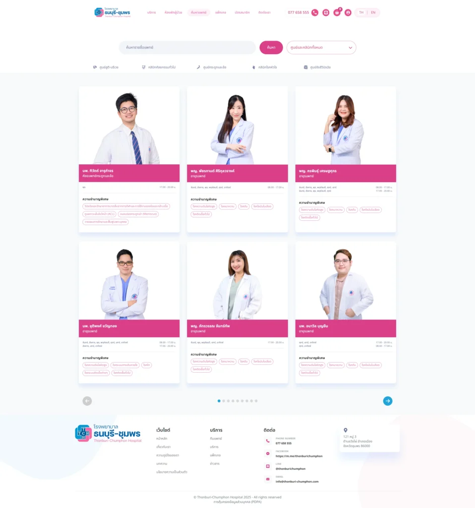 เว็บไซต์ thonburi-chumphon.com เป็นเว็บไซต์ทางการของโรงพยาบาลธนบุรี-ชุมพร มีเป้าหมายหลักคือ ให้ข้อมูลบริการทางการแพทย์, ขายแพ็กเกจสุขภาพ, นัดหมายการใช้บริการ, สร้างความน่าเชื่อถือแบรนด์, ให้ความรู้สุขภาพผ่านบทความและเป็นช่องทางการติดต่อสื่อสารระหว่างโรงพยาบาลและผู้ที่สนใจใช้บริการอีกช่องทางหนึ่ง